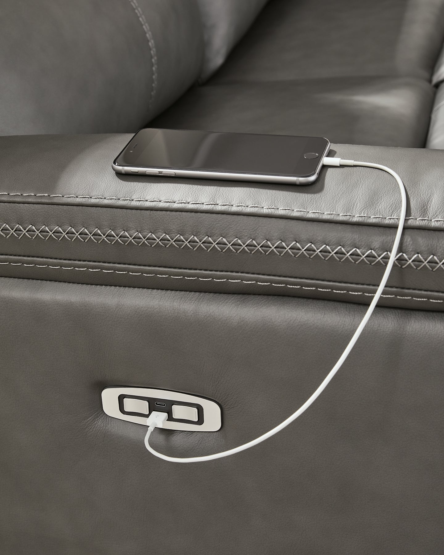 Are you ready to experience next-level relaxation? This power reclining sectional combines supple leather and faux leather upholstery with smart features that make unwinding effortless. With just one touch, you can adjust your position while the power headrest keeps you perfectly aligned for reading or binge-watching your favorite shows. The Zero³ reclining requires minimal space between wall and chair back while delivering fully supported, fully reclined comfort at the touch of a button. Thoughtfully designed with sculptural padded arms and built-in USB charging, this spacious piece will be your new favorite spot to recharge—both yourself and your devices. And how about those handy cup holders?