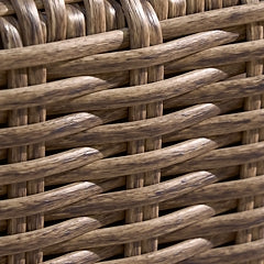 | Details | All-weather resin wicker handwoven over rust-resistant aluminum frame with durable powder coated finish, Solution-dyed high-performance fabric, Nuvella is an outdoor fabric that can be cleaned and offers UV resistance, Clean fabric with mild soap and water, let air dry; for stubborn stains, use a solution of 4 oz. bleach to 28 oz. water, 4 throw pillows included, Stainless steel hardware, Designed to withstand the harsh elements of the outdoors, Assembly required | |