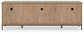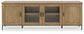 Made for the everyday, this TV stand is a sleek complement to your casual contemporary living room. You’ll love the refined-yet-relaxed vibe of its contrasting medium brown finish and matte black legs. Concealed and glass-front cabinets make media storage a breeze. And for added function, cord management holes throughout the piece make connections easier.